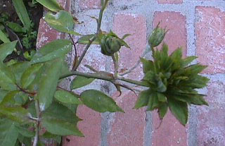PHOTOS: Top- An unearthly green rose in bloom. Black ones also grow in this mysterious garden. Below: The upstairs window where I saw the "docent" glaring down at me.