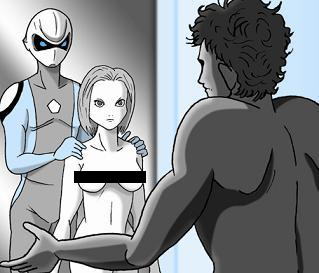 Afraid that someone was looking for him, Travis tried to leave the circular room. The doors would not open for him but suddenly one did, and Travis was confronted by a 6 foot tall, muscular built human being.